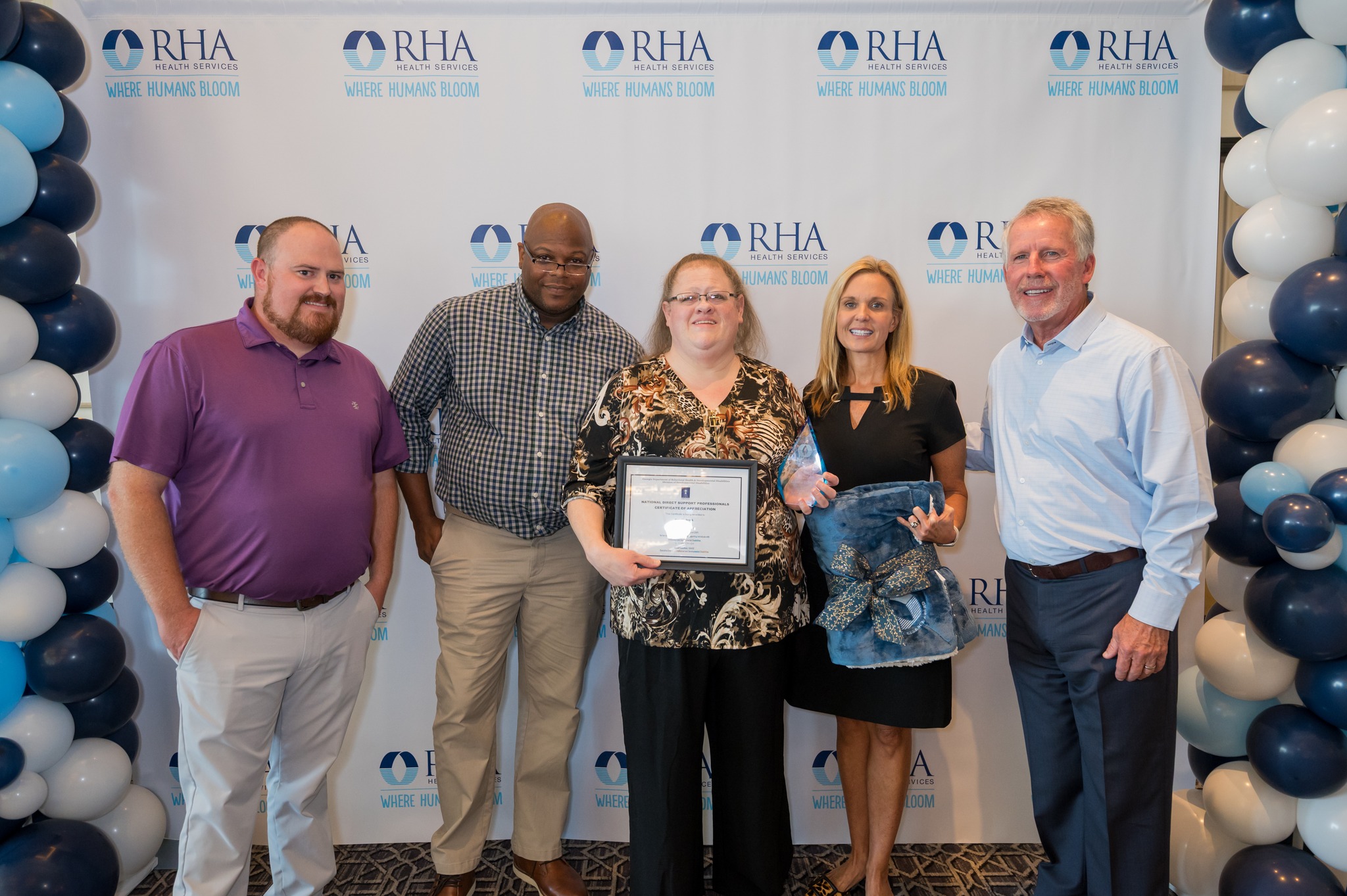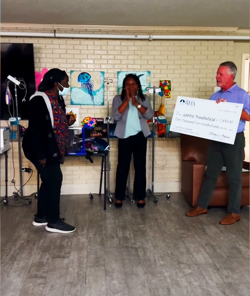 Beyond recognition, RHA Cares Excellence Award recipients received bonus checks, hourly pay increases, and commemorative blankets. The blankets symbolize the warmth, comfort, and support these employees provide to the individuals they serve.